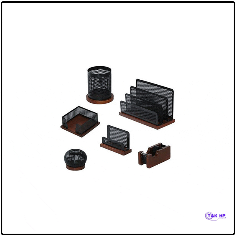 ست اداری رومیزی 6 تکه مدل چوب و فلز یکی از موارد لازم بر روی هر میز اداری می باشد تا باعث نظم دادن و شکیل شدن روی میز می شود که این مجموعه از 6 قطعه لوازم جانبی میز اداری ساخته شده است که برای هر میز، اتاق یا دفتری مناسب است .