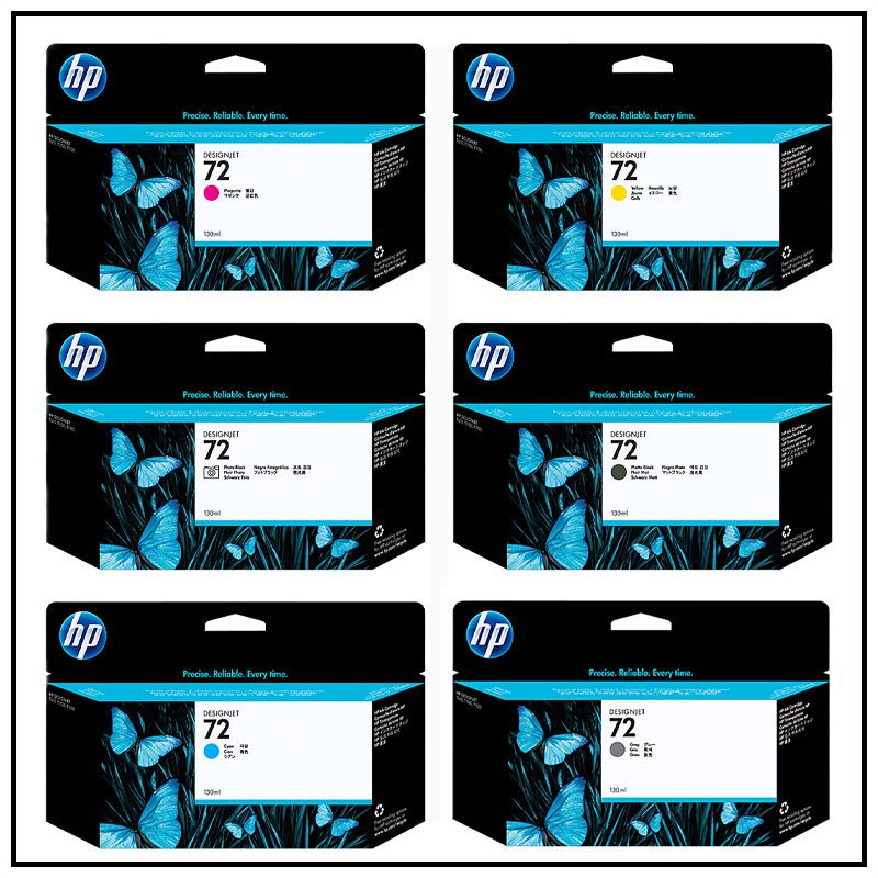 سری کامل کارتریج جوهری پلاتر 72 Hp مخصوص پلاتر های T1100 , T1200 , T1300 , T3100 , T610 , T770 , T790 , T795 که تمامی این هدها از شش رنگ کارتریج استفاده میکنند.