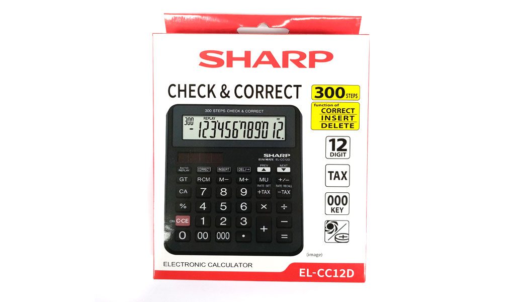 شرکت شارپ یکی از نام‌ های آشنا در تولید محصولات الکترونیک مخصوصاً در زمینه‌ی ماشین‌حساب می باشد . ماشین حساب شارپ مدل EL-CC12D در دسته‌ی مدل‌ های رومیزی قرار می‌گیرد و قادر است تا 12 عدد را بر روی صفحه‌ نمایش بزرگ خود نمایش دهد .